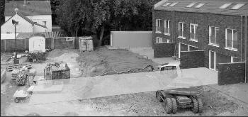Die Bepflanzung der Grundstücksgrenze ist halb offen. Die